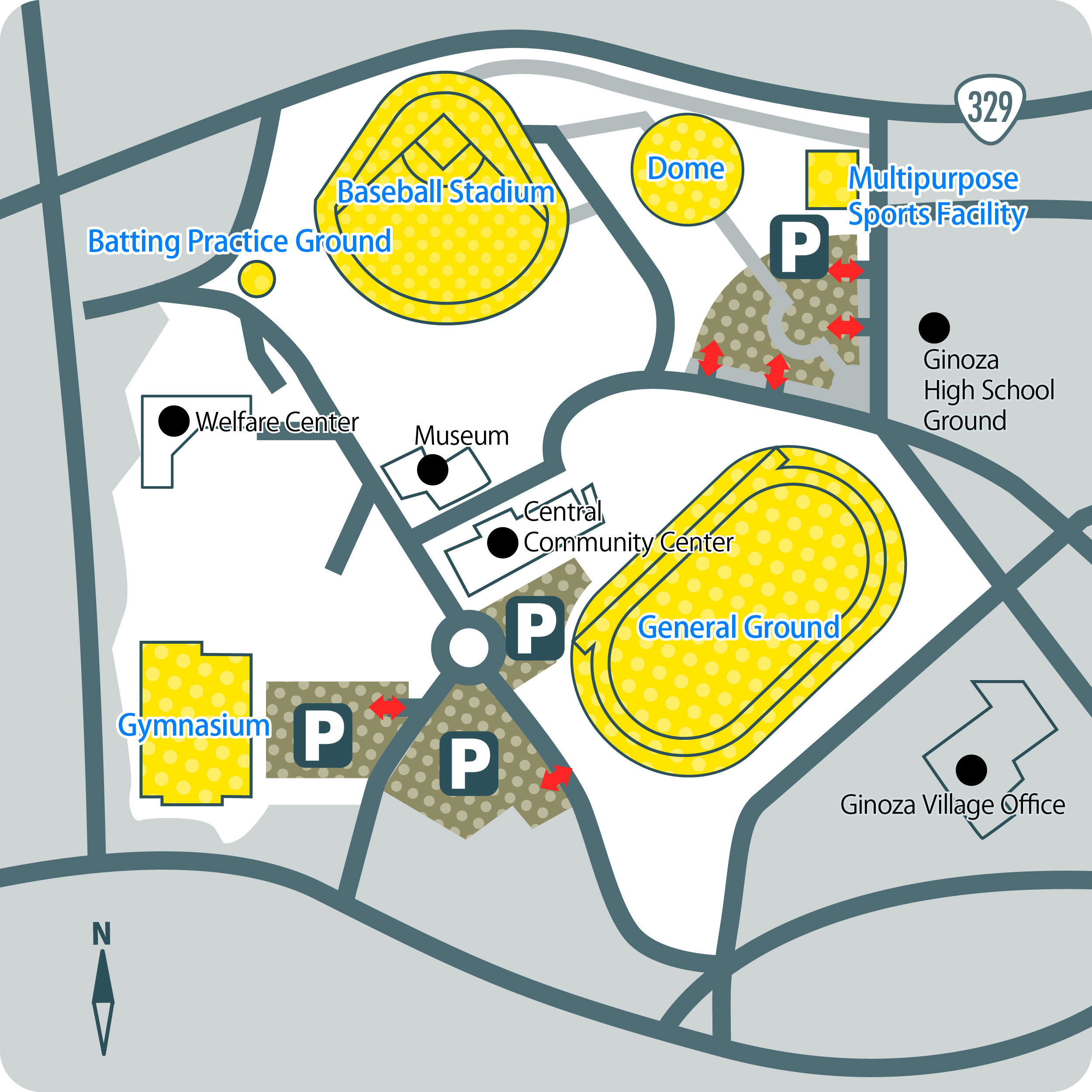 | Facility details | Facility area: 1,944㎡, Ceiling height: 16m, Floor: wood flooring, 3 Volleyball courts, 3 Basketball courts, 3 Badminton courts, 5 Table tennis courts. | ||