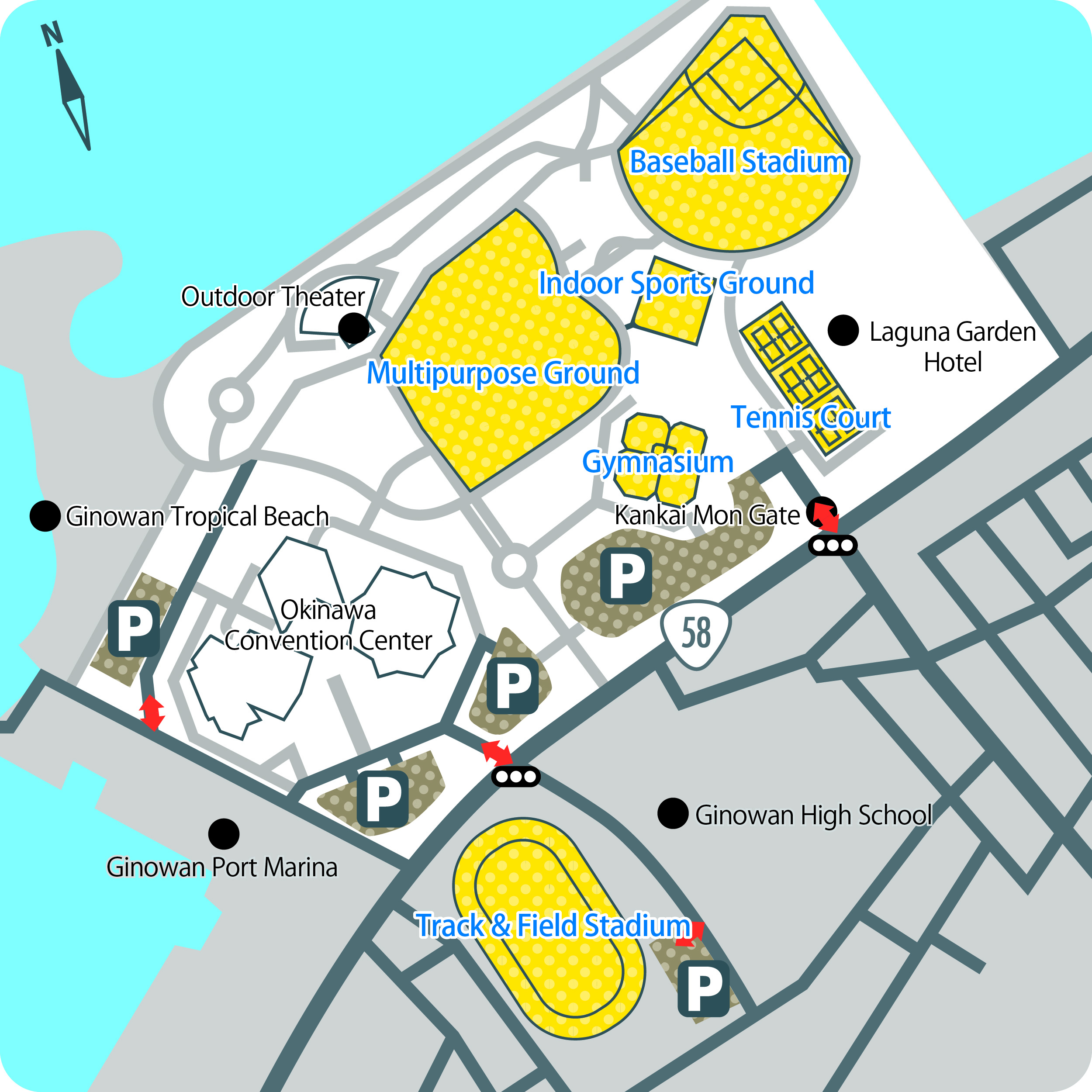 | Facility details | Facility area: 3,136㎡, 1 Rubber ball baseball field, 2 Futsal courts. | ||